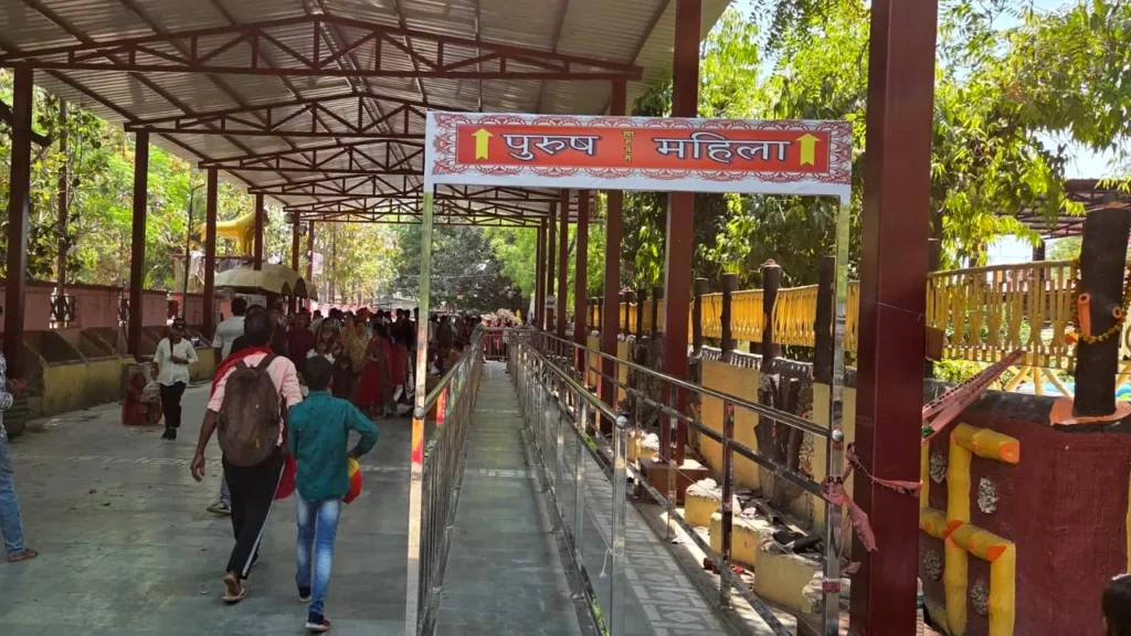 मंदिर परिसर के मुख्य प्रवेश से भवन तक जाने का मार्ग यहां दिखाया गया है। संसाधन से आने वाले भक्‍त पार्किंग मे गाड़ी खड़ी कर तिराहे से प्रवेश करते हैं, भवन के मुख्‍य द्वार से आगे जाकर वह प्रवेश गैलरी में प्रवेश कर घूमते हुए भवन में मुख्‍य द्वार पर आते हैं। यह मार्ग सीधे मंदिर भवन तक पहुंचता है। श्रद्धालु इसी रास्ते से दर्शन के लिए जाते हैं।यहां का वातावरण शांत और श्रद्धा से भरा होता है।मार्ग में साफ-सफाई का विशेष ध्यान रखा जाता है। इस रास्ते पर भक्तों की भीड़ रहती है। यह गैलरी भवन तक के मार्ग को दर्शाती है। यह नए आने वाले लोगों के लिए सहायक है।