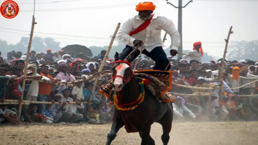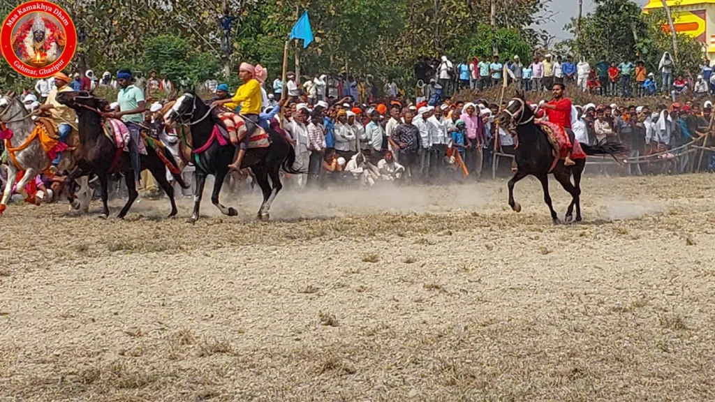 मां कामाख्‍या धाम में आयोजनों एवं कार्यकमों का इतिहास बड़ा पुराना है। यहां के प्रमुख आयोजनों में चैतीय रामनवमी के दिन घुड़दौड़ का आयोजन होता है। यह आयोजन समय समय पर जगह बदल बदल कर होता है, वर्तमान समय में इसका संचालन पूर्व मंत्री ओमप्रकाश सिंह जी कर रहे हैं। इसके साथ यहां रामनवमी के दिन विराट दंगल का आयोजन स्‍थानीय लोगों के द्वारा होता है। यहां गुड़ और दूध का बना हुआ शरबत पिलाने की पुरानी परम्‍परा है। गहमर के नौजवान, बड़े, एवं बुजुर्ग पहली नवरात्रि से प्रति दिन सुबह आ जाते है, वह गुड़ को पीसते है, उसमें दूध मिलाते हैं, और उसे मां कामाख्‍या जी को समर्पित करते हैं, और तब उसका वितरण होता है। इसके साथ यहां अन्‍नकूट के दिन 56 प्रकार के भोग लगाकर आरती होती है। नवरात्रि के सप्‍तमी तिथि को निशा आरती में लाखो भक्‍त हिस्‍सा लेते हैं जो देर रात तक चलती है। यह कार्यक्रम स्थानीय संस्कृति को दर्शाते हैं।यहां का वातावरण उत्साहपूर्ण होता है।लोग दूर-दूर से यहां आते हैं।यह आयोजन विशेष अवसरों पर होते हैं।