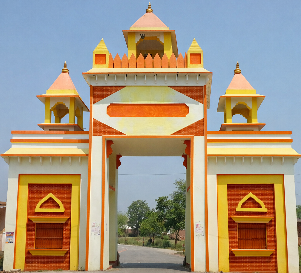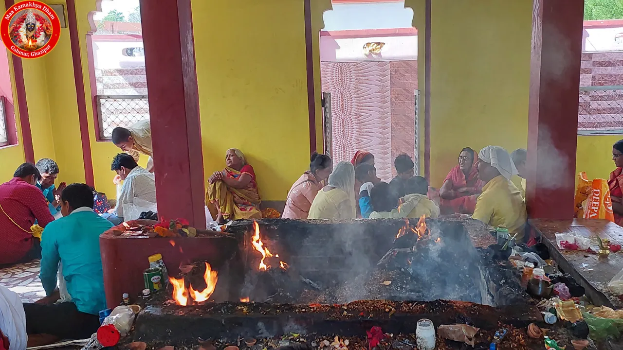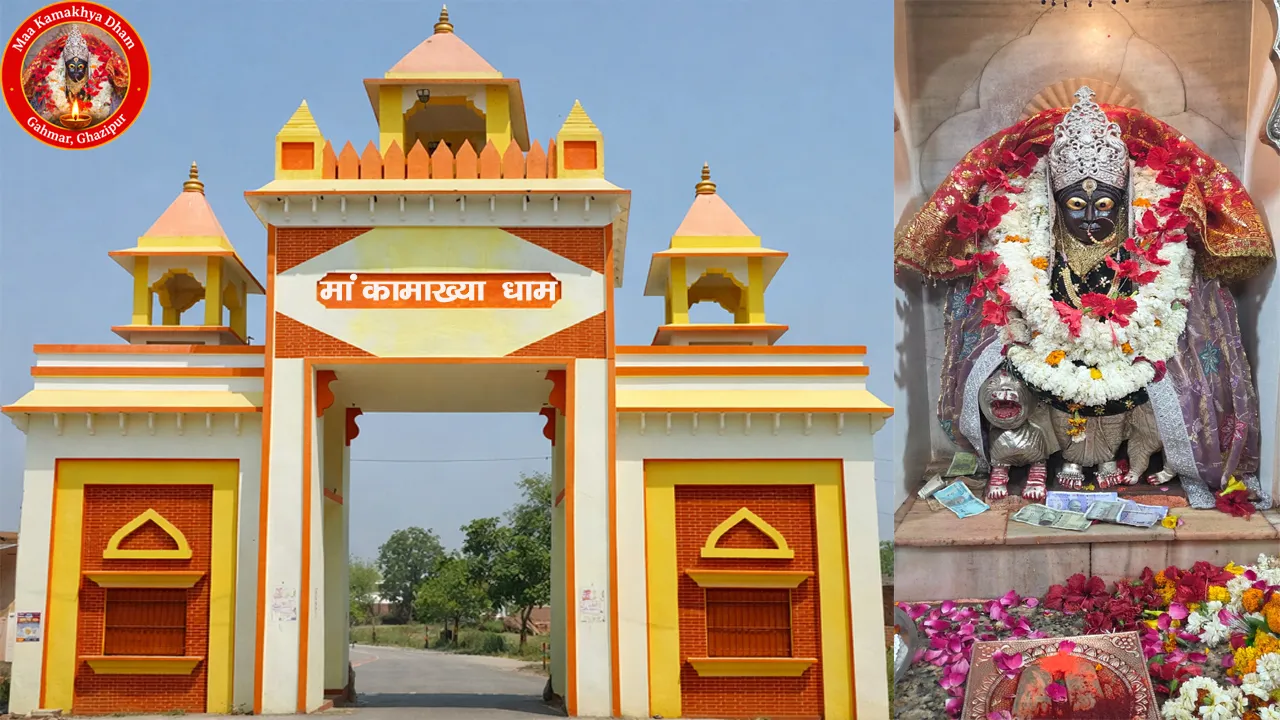 माँ कामाख्या धाम पर पहुँचते ही गाजीपुर-बारा मुख्य मार्ग पर काशी हिन्दू विश्वविद्यालय की तर्ज पर बने लगभग 40 फीट ऊँचे पश्चिम और दक्षिण दिशा की तरफ मुख वाले इस द्वार आपका स्वागत करता है। इस गेट के ठीक सामने यूनियन बैंक ऑफ इंडिया की तरफ से एक प्रतीक्षालय भी बना हुआ है। इस द्वार से अंदर गया रास्ता सीधे आपको मंदिर में पहुँचा देता है