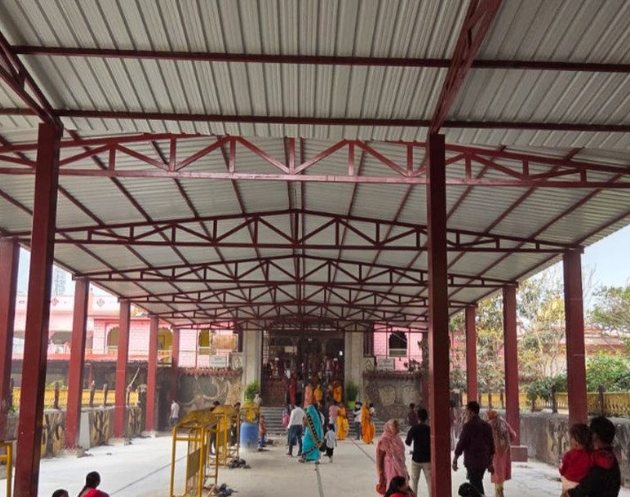 स्वागत द्वार से प्रवेश करते ही यह रास्ता आपको मां कामाख्या के भवन तक सीधे ले जायेगा। मंदिर के पास पहुँच कर दाहिने तरफ नास्ते पानी की दुकाने एवं उसके आगे फल प्रसाद की दुकानें हैं।